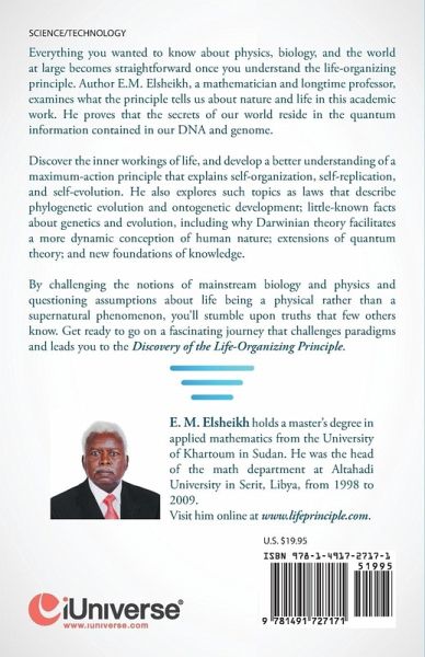 Everything you wanted to know about physics, biology, and the world at large becomes straightforward once you understand the life-organizing principle. Author E.M. Elsheikh, a mathematician and longtime professor, examines what the principle tells us about nature and life in this academic work. He proves that the secrets of our world reside in the quantum information contained in our DNA and genome. Discover the inner workings of life, and develop a better understanding of a maximum-action principle that explains self-organization, self-replication, and self-evolution. He also explores such topics as laws that describe phylogenetic evolution and ontogenetic development; little-known facts about genetics and evolution, including why Darwinian theory facilitates a more dynamic conception of human nature; extensions of quantum theory; and new foundations of knowledge. By challenging the notions of mainstream biology and physics and questioning assumptions about life being a physical rather than a supernatural phenomenon, you'll stumble upon truths that few others know. Get ready to go on a fascinating journey that challenges paradigms and leads you to the Discovery of the Life-Organizing Principle.