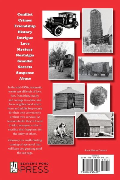 In the mid-1950s, traumatic events test all levels of love, lust, friendship, loyalty, and courage in a close-knit farm neighborhood where teens and adults keep secrets for their own convenience or their own survival. As tensions build, they're forced to take courageous risks to sacrifice their happiness for the safety of others. Discovery is a myth-busting coming-of-age novel that will keep you guessing until the last page. Immerse yourself in a past era and discover that life then was no less complicated, and the issues of love and discovery no less traumatic, than in any decades since.