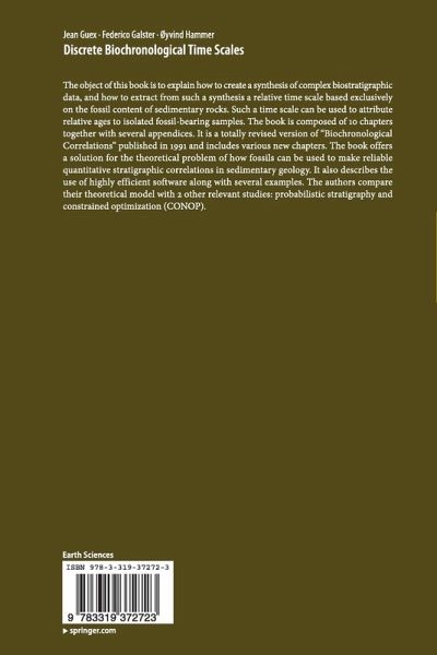 The object of this book is to explain how to create a synthesis of complex biostratigraphic data, and how to extract from such a synthesis a relative time scale based exclusively on the fossil content of sedimentary rocks. Such a time scale can be used to attribute relative ages to isolated fossil-bearing samples. The book is composed of 10 chapters together with several appendices. It is a totally revised version of "Biochronological Correlations" published in 1991 and includes various new chapters. The book offers a solution for the theoretical problem of how fossils can be used to make reliable quantitative stratigraphic correlations in sedimentary geology. It also describes the use of highly efficient software along with several examples. The authors compare their theoretical model with 2 other relevant studies: probabilistic stratigraphy and constrained optimization (CONOP).