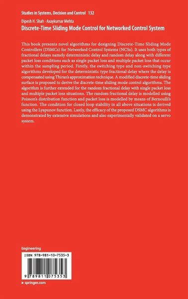 This book presents novel algorithms for designing Discrete-Time Sliding Mode Controllers (DSMCs) for Networked Control Systems (NCSs) with both types of fractional delays namely deterministic delay and random delay along with different packet loss conditions such as single packet loss and multiple packet loss that occur within the sampling period. Firstly, the switching type and non-switching type algorithms developed for the deterministic type fractional delay where the delay is compensated using Thiran's approximation technique. A modified discrete-time sliding surface is proposed to derive the discrete-time sliding mode control algorithms. The algorithm is further extended for the random fractional delay with single packet loss and multiple packet loss situations. The random fractional delay is modelled using Poisson's distribution function and packet loss is modelled by means of Bernoulli's function. The condition for closed loop stability in all above situations are derived using the Lyapunov function. Lastly, the efficacy of the proposed DSMC algorithms are demonstrated by extensive simulations and also experimentally validated on a servo system.