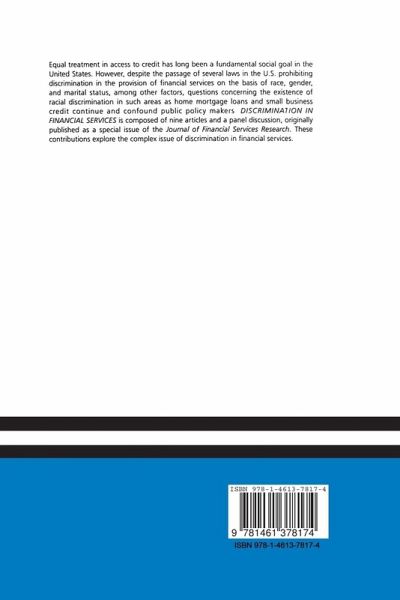 Equal treatment in access to credit has long been a fundamental social goal in the United States. However, despite the passage of several laws in the U.S. prohibiting discrimination in the provision of financial services on the basis of race, gender, and marital status, among other factors, questions concerning the existence of racial discrimination in such areas as home mortgage loans and small business credit continue, and confound public policy makers. This book is composed of nine articles and a panel discussion, originally published as a special issue of the Journal of Financial Services Research. These contributions explore the complex issue of discrimination in financial services.