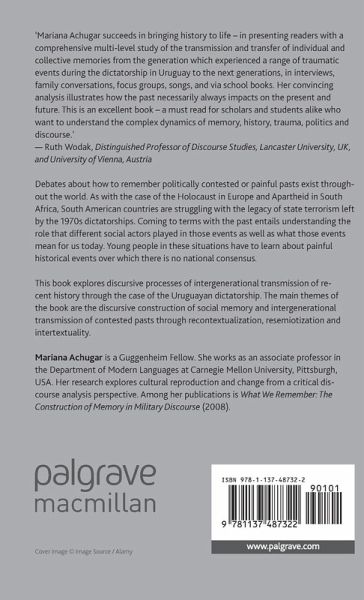 This book explores discursive processes of intergenerational transmission of recent history through the case of the Uruguayan dictatorship. The main themes of the book are the discursive construction of social memory and intergenerational transmission of contested pasts through recontextualization, resemiotization and intertextuality.