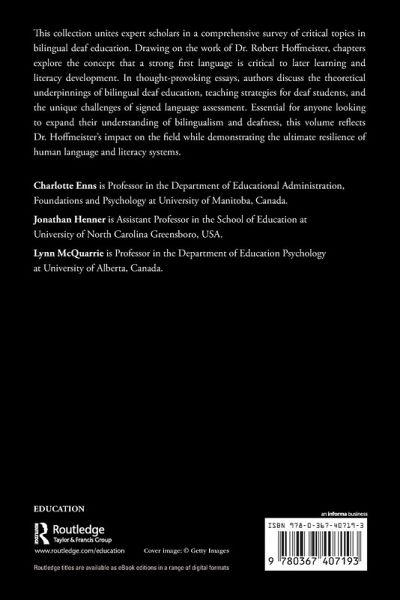 This collection unites expert scholars in a comprehensive survey of critical topics in bilingual deaf education. Drawing on the work of Dr. Robert Hoffmeister, chapters explore the concept that a strong first language is critical to later learning and literacy development. In thought-provoking essays, authors discuss the theoretical underpinnings of bilingual deaf education, teaching strategies for deaf students, and the unique challenges of signed language assessment. Essential for anyone looking to expand their understanding of bilingualism and deafness, this volume reflects Dr. Hoffmeister's impact on the field while demonstrating the ultimate resilience of human language and literacy systems.