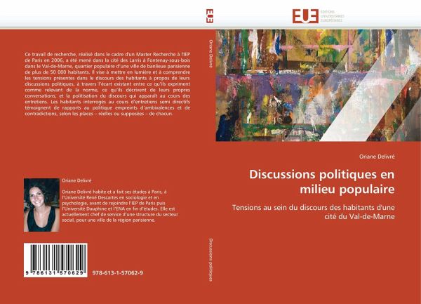 Ce travail de recherche, réalisé dans le cadre d'un Master Recherche à l'IEP de Paris en 2006, a été mené dans la cité des Larris à Fontenay-sous-bois dans le Val-de-Marne, quartier populaire d'une ville de banlieue parisienne de plus de 50 000 habitants. Il vise à mettre en lumière et à comprendre les tensions présentes dans le discours des habitants à propos de leurs discussions politiques, à travers l'écart existant entre ce qu'ils expriment comme relevant de la norme, ce qu'ils décrivent de leurs propres conversations, et la politisation du discours qui apparaît au cours des entretiens. Les habitants interrogés au cours d'entretiens semi directifs témoignent de rapports au politique empreints d'ambivalences et de contradictions, selon les places réelles ou supposées de chacun.