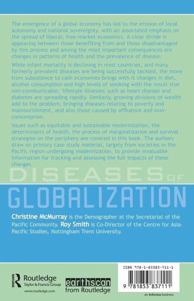 The emergence of a global economy has led to the erosion of local autonomy and national sovereignty with an associated emphasis on the spread of liberal, free-market economics. A clear divide is appearing between those benefiting from and those disadvantaged by this process. Among the most important consequences are changes in the patterns of health and the prevalence of disease. While infant mortality is declining in most countries, and many formerly prevalent diseases are being successfully tackled, the move from subsistence to cash economies brings with it changes in diet, alcohol consumption and high levels of smoking; with the result that non-communicable, 'lifestyle illnesses' such as heart disease and diabetes are spreading rapidly. Similarly, growing divisions of wealth add to the problem, bringing diseases relating to poverty and malnourishment as well as those caused by affluence and over-consumption. Issues covered in this book include equitable and sustainable modernization, the determinants of health, the process of marginalization, and survival strategies on the periphery. The authors draw on primary case study material, largely from societies in the Pacific region undergoing modernization, to provide invaluable information for tracking and assessing the full impacts of these changes.