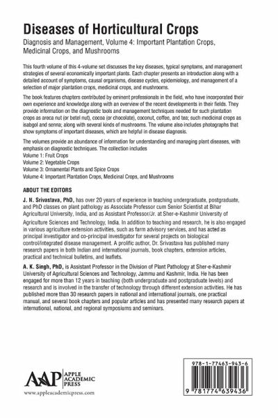 Discusses the key diseases, typical symptoms, and management strategies of several economically important plantation crops, medicinal crops, and mushrooms. The chapters cover key diseases, typical symptoms, and management strategies. The volumes also include photographs that show symptoms of important diseases.