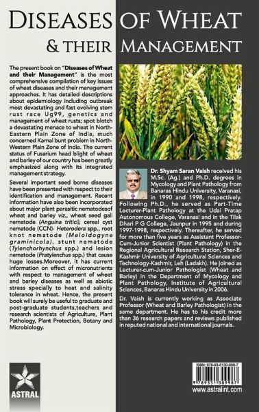 The present book on "Diseases of Wheat and their Management" is the most comprehensive compilation of key issues of wheat diseases and their management approaches. It has detailed descriptions about epidemiology including outbreak most devastating and fast evolving stem rust race Ug99, genetics and management of wheat rusts; spot blotch a devastating menace to wheat in North-Eastern Plain Zone of India, much concerned Karnal bunt problem in North-Western Plain Zone of India. The current status of Fusarium head blight of wheat and barley of our country has been greatly emphasized along with its integrated management strategy. Several important seed borne diseases have been presented with respect to their identification and management. Recent information have also been incorporated about major plant parasitic nematodesof wheat and barley viz., wheat seed gall nematode (Anguina tritici), cereal cyst nematode (CCN)- Heterodera spp., root knot nematode (Meloidogyne graminicola), stunt nematode (Tylenchorhynchus spp.) and lesion nematode (Pratylenchus spp.) that cause huge losses.Moreover, it has current information on effect of micronutrients with respect to management of wheat and barley diseases as well as abiotic stress specially to heat and salinity tolerance in wheat. Hence, the present book will surely be useful to graduate and post-graduate students,teachers and research scientists of Agriculture, Plant Pathology, Plant Protection, Botany and Microbiology.