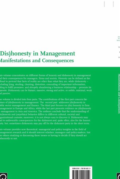 This volume concentrates on different forms of honesty and dishonesty in management and their consequences for managers, firms and society. These issues are related to values and behavior patterns and thus, the basis of contemporary business.