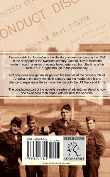 Dishonorable to Honorable is the life story of one man born in the USA in the early part of the twentieth century. Donald Dulyea takes the reader through a series of events he experienced from the time of his birth in 1907, right through to the present day. Not only does one get an insight into the lifestyle of the ordinary folk of America in the early twentieth century, but the reader also has a chance to experience life as it was then in both the US Navy and Army. The concluding part of the novel is a series of adventures showing how one ex-service man coped with life after the services.