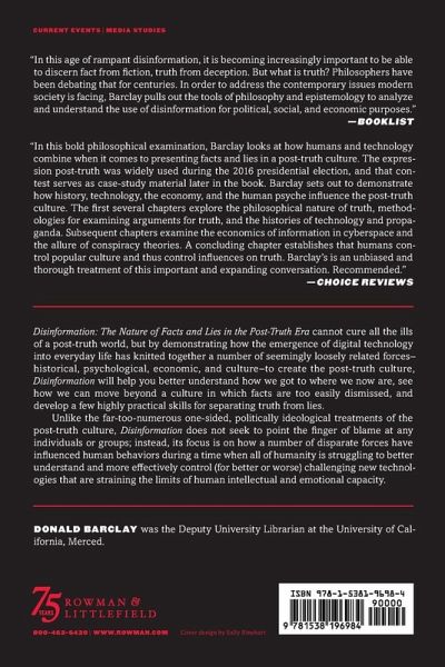 Does the idea of a world in which facts mean nothing cause anxiety? Fear? Maybe even paranoia? Disinformation:The Nature of Facts and Lies in the Post-Truth Era cannot cure all the ills of a post-truth world, but by demonstrating how the emergence of digital technology into everyday life has knitted together a number of seemingly loosely related forces-historical, psychological, economic, and culture-to create the post-truth culture, Disinformation will help you better understand how we got to where we now are, see how we can move beyond a culture in which facts are too easily dismissed, and develop a few highly practical skills for separating truth from lies. Disinformation explains: How human psychology-the very way our brains work-can leave us vulnerable to disinformation.How the early visions of what a global computer network would and should be unintentionally laid the groundwork for the current post-truth culture.The ways in which truth is twisted and misrepresented via propaganda and conspiracy theories. How new technology not only spreads disinformation but may also be changing the way we think.The ways in which the economics of information and the powerful influence of popular culture have contributed to the creation of the post-truth culture.Unlike the far-too-numerous one-sided, politically ideological treatments of the post-truth culture, Disinformation does not seek to point the finger of blame at any individuals or groups; instead, its focus is on how a number of disparate forces have influenced human behaviors during a time when all of humanity is struggling to better understand and more effectively control (for better or worse) challenging new technologies that are straining the limits of human intellectual and emotional capacity.