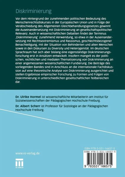 Die Beiträge des vorliegenden Bandes sind in Anschluss an die internationale Fachdiskussion auf eine theoretische Analyse vonDiskriminierung ausgerichtet und stellen Ergebnisse empirischer Forschung zu Formen und Folgen von Diskriminierung in unterschiedlichen gesellschaftlichen Teilbereichen dar.