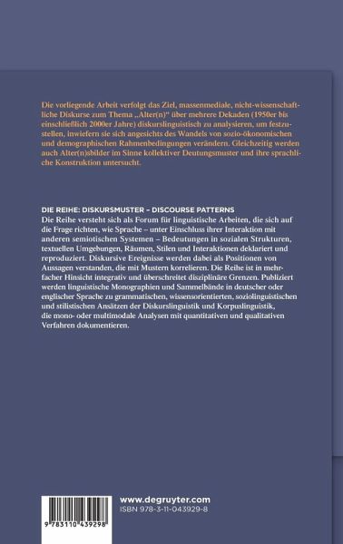Der so genannte "demografische Wandel" hat sich in den vergangenen Jahren zu einem breit diskutierten Thema entwickelt. Der augenfälligste Aspekt dieses Wandels, die veränderte Altersstruktur der deutschen Bevölkerung, wird besonders massenmedial thematisiert. Bezüglich dieser massenmedialen Diskurse existieren bisher lediglich pauschale Urteile und punktuelle Eindrücke. Insbesondere der Anteil, den die Sprache an der Konstruktion öffentlicher Bilder von Alter(n) hat, ist bislang nicht systematisch untersucht worden. Die vorliegende Arbeit verfolgt das Ziel, massenmediale, nicht-wissenschaftliche Diskurse zum Thema "Alter(n)" über mehrere Dekaden (1950er bis einschließlich 2000er Jahre) diskurslinguistisch zu analysieren, um festzustellen, inwiefern sie sich angesichts des Wandels von sozio-ökonomischen und demographischen Rahmenbedingungen verändern. Gleichzeitig werden auch Alter(n)sbilder im Sinne kollektiver Deutungsmuster und ihre sprachliche Konstruktion untersucht. In der vorliegenden Arbeit wird erstmals diskurslinguistische Methodik auf den öffentlichen Altersdiskurs angewendet. Die diskursiven Kontinuitäten und Brüche des öffentlichen Sprechens und damit der sprachlichen Konstruktion von Alter werden herausgearbeitet.
