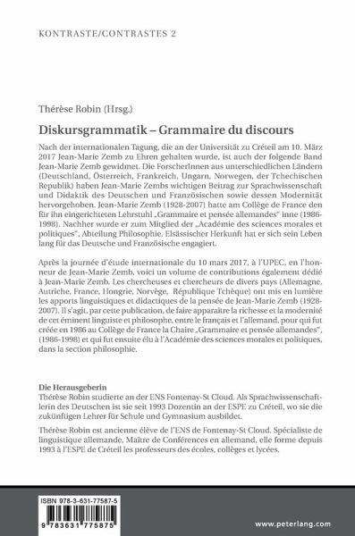 Nach der internationalen Tagung, die an der Universität zu Créteil am 10. März 2017 zu Ehren Jean-Marie Zembs abgehalten wurde, ist diesem nun der vorliegende Band ausgewählter Beiträge gewidmet. Die ForscherInnen aus unterschiedlichen Ländern heben Jean-Marie Zembs wichtigen Beitrag zur Sprachwissenschaft und Didaktik des Deutschen und Französischen sowie dessen Modernität hervor. Jean-Marie Zemb (1928-2007) hatte am Collège de France den für ihn eingerichteten Lehrstuhl «Grammaire et pensée allemandes» inne (1986-1998). Danach wurde er zum Mitglied der «Académie des sciences morales et politiques», Abteilung Philosophie. Als gebürtiger Elsässer hat er sich sein Leben lang für das Deutsche und Französische engagiert.