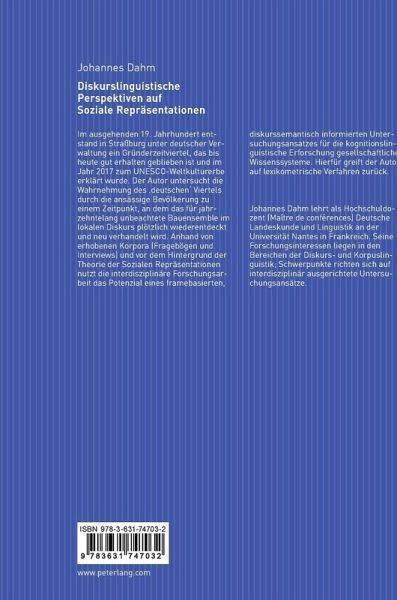 Im ausgehenden 19. Jahrhundert entstand in Straßburg unter deutscher Verwaltung ein Gründerzeitviertel, das bis heute gut erhalten geblieben ist und im Jahr 2017 zum UNESCO-Weltkulturerbe erklärt wurde. Der Autor untersucht die Wahrnehmung des «deutschen» Viertels durch die ansässige Bevölkerung zu einem Zeitpunkt, an dem das für jahrzehntelang ignorierte Bauensemble im lokalen Diskurs plötzlich wiederentdeckt und neu verhandelt wird. Anhand von erhobenen Korpora (Fragebögen und Interviews) und vor dem Hintergrund der Theorie der sozialen Repräsentationen nutzt die interdisziplinäre Forschungsarbeit das Potenzial eines framebasierten, diskurssemantisch informierten Untersuchungsansatzes für die kognitionslinguistische Erforschung gesellschaftlicher Wissenssysteme. Hierfür greift der Autor auf lexikometrische Verfahren zurück.