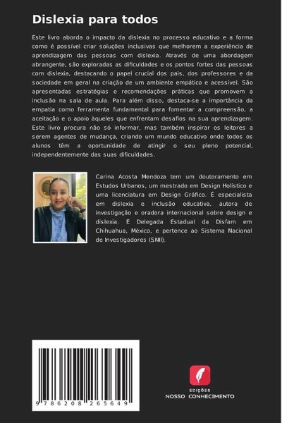 Este livro aborda o impacto da dislexia no processo educativo e a forma como é possível criar soluções inclusivas que melhorem a experiência de aprendizagem das pessoas com dislexia. Através de uma abordagem abrangente, são exploradas as dificuldades e os pontos fortes das pessoas com dislexia, destacando o papel crucial dos pais, dos professores e da sociedade em geral na criação de um ambiente empático e acessível. São apresentadas estratégias e recomendações práticas que promovem a inclusão na sala de aula. Para além disso, destaca-se a importância da empatia como ferramenta fundamental para fomentar a compreensão, a aceitação e o apoio àqueles que enfrentam desafios na sua aprendizagem. Este livro procura não só informar, mas também inspirar os leitores a serem agentes de mudança, criando um mundo educativo onde todos os alunos têm a oportunidade de atingir o seu pleno potencial, independentemente das suas dificuldades.