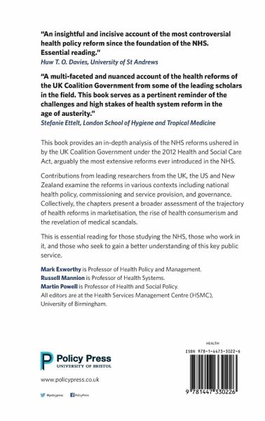 Mark Exworthy is Professor of Health Policy and Management at the University of Birmingham. Russell Mannion is Professor of Health Systems at the University of Birmingham. Martin Powell is Professor of Health and Social Policy at the University of Brimingham. All editors are at the Health Services Management Centre (HSMC), University of Birmingham.