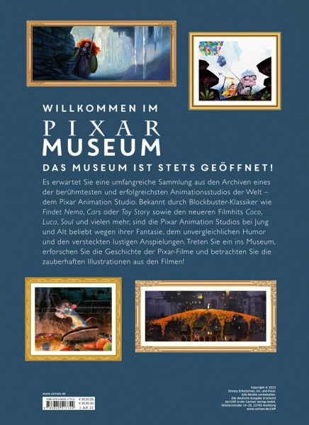 Dieses großformatige Buch zeigt selten zu sehendes Bildmaterial aus den offiziellen Pixar-Studios, darunter Konzeptzeichnungen aus der Frühphase beliebter Filme wie Toy Story, Monsters Inc, Finding Nemo, Up, Cars, Coco und Die Unglaublichen.