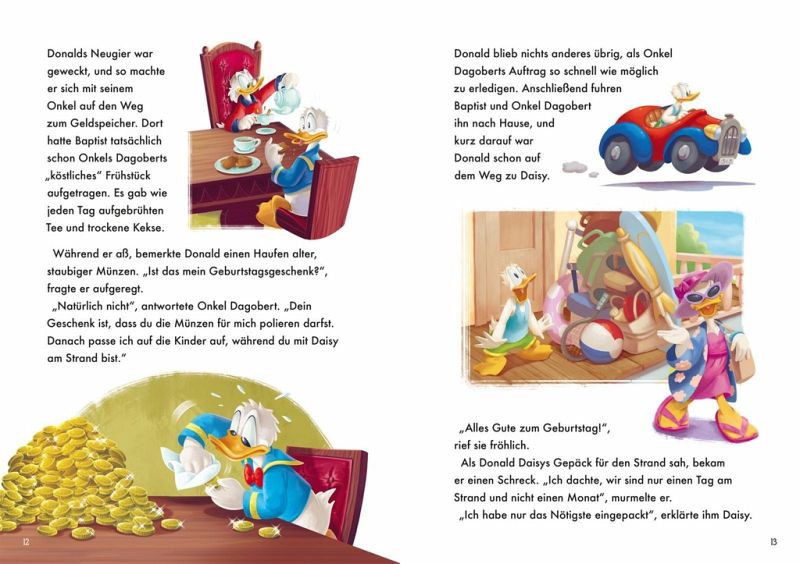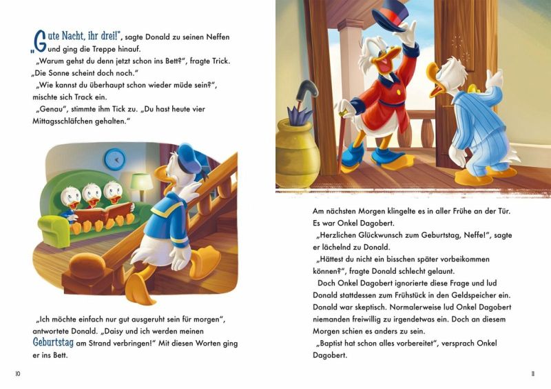 Donald Duck zählt zu den ersten Disney-Charakteren, die nach Micky Maus, Goofy und Pluto das Licht der Welt erblickt haben. Seither begeistert der liebenswerte Tollpatsch große und kleine Disney-Fans. Und während er von einem Abenteuer ins nächste stolpert, kann er immer auf die Unterstützung seiner Freundin Daisy, seines geizigen Onkels Dagobert und seiner vorwitzigen Neffen Tick, Trick und Track zählen. Kindgerecht erzählt und voller humorvoller Bilder ist dieses Geschichtenbuch ein wahrer Schatz für die ganze Familie!