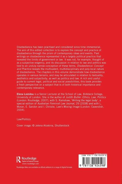 Disobedience has been practiced and considered since time immemorial. The aim of this edited collection is to explore the concept and practice of disobedience through the prism of contemporary ideas and events. Past writings on disobedience represented it as a largely political practice that revealed the limits of government or law. It was not, for example, thought of as a subjective exigency and its discussion in relation to law and politics was tied to an unduly narrow conception of these terms. Disobedience: Concept and Practice reveals the multivalent, multidisciplinary and poly-local nature of disobedience. The essays in this volume demonstrate how disobedience operates in various terrains, and may be articulated in relation to textuality, aesthetics and subjectivity, as well as politics and law. A rich and useful guide to current legal, political and social possibilities, this book provides a fresh perspective on a subject that is of both historical importance and contemporary relevance.