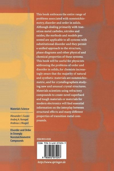 long to understand that the phenomena associated with the redistribution of interstitial atoms and structural vacancies in non stoichiometric compounds represent an excellent model of analogous phenomena arising in solid-state systems with mutual substitution of components. Therefore methods of analysis and description proposed and developed for nonstoichiometric compounds are applicable to a number of systems with substitutional disorder. In 1980, when we embarked on this work, ordering in nonstoichiometric compounds was assumed to be a rare and accidental effect, which hardly deserved close attention. Now many people understand that ordering represents a general regular phenomenon in all non stoichiometric compounds. Ordering effects, which were not even mentioned, or were referred to as something insignificant and negligible just 20 years ago, proved to be numerous and comparable in magnitude with the change of properties in the whole homogeneity interval of non stoichiometriccompounds. Phase diagrams of binary systems of transition metals with carbon and nitrogen, which remained unchanged from the time they were plotted in 1950-60s and containing one or two nonstoichiometric compounds, were enriched with many ordered phases. Unfortunately, the accumulated experimental and theoretical knowledge has not so far been disseminated widely.