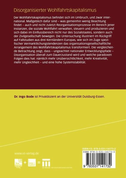 Der Wohlfahrtskapitalismus befindet sich im Umbruch, und zwar international. Maßgeblich dafür sind - was gemeinhin wenig Beachtung findet - auch und nicht zuletzt Reorganisationsprozesse im Bereich jener Instanzen, die soziale Wohlfahrt verwalten, steuern und produzieren und sich dabei im Einflussbereich nicht nur des Sozialstaates, sondern auch der Zivilgesellschaft bewegen. Die Untersuchung illustriert im Rückgriff auf Fallstudien aus drei Kernländern Europas, wie sich im Zuge spezifischer Vermarktlichungstendenzen das organisationsgesellschaftliche Arrangement des Wohlfahrtskapitalismus transformiert. Die vergleichende Betrachtung zeigt, dass - ungeachtet nationaler Entwicklungspfade - Disorganisation überall zum Dauerzustand wird und welche paradoxen Folgen dies hat: nämlich mehr Unübersichtlichkeit, mehr Kreativität, mehr Ungleichheit - und eine hohe Systemstabilität.