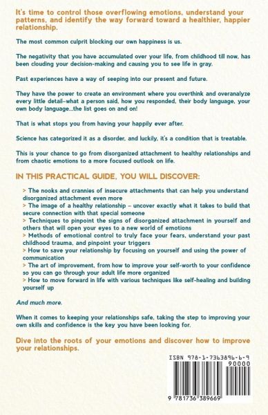 It's time to control those overflowing emotions, understand your patterns, and identify the way forward toward a healthier, happier relationship. Have you been dealing with a rollercoaster of emotions that seem to create roadblocks to your happiness? Do you sometimes feel it would be easier if you stayed single because you didn't want to put someone through your spinning thoughts? Do you self-sabotage when it comes to deciding what you need to do and your happiness? Listen, the most common culprit towards blocking our own happiness is us. The negativity that you have accumulated over your life, from childhood till now, has been clouding your decision-making and causing you to see life in gray. You see, past experiences have a way of seeping into our present and future. They have the power to create an environment where you overthink and overanalyze every little detail-what a person said, how you responded, their body language, your own body language...the list goes on and on! That is what stops you from having your happily ever after. You are probably dealing with disorganized attachment, but you aren't really sure what that means. Science has categorized it as a disorder, and luckily, it's a condition that is treatable. This is your chance to go from disorganized attachment to healthy relationships and from chaotic emotions to a more focused outlook on life. It's time to truly tap into the details of your past to create a happier future. In this practical guide, you will discover: The nooks and crannies of insecure attachments that can help you understand disorganized attachment even more The image of a healthy relationship - uncover exactly what it takes to build that secure connection with that special someone Techniques to pinpoint the signs of disorganized attachment in yourself and others that will open your eyes to a new world of emotions Methods of emotional control to truly face your fears, understand your past childhood trauma, and pinpoint your triggers How to save your relationship by focusing on yourself and using the power of communication The art of improvement, from how to improve your self-worth to your confidence so you can go through your adult life more organized How to move forward in life with various techniques like self-healing and building yourself up And much more. When it comes to keeping your relationships safe, taking the step to improving your own skills and confidence might be the key you have been looking for. With this guide, you can understand where your feelings are from and how to deal with them. If you're ready to dive into the roots of your emotions and discover how to improve your relationships, then scroll up and click the "Add to Cart" button right now.