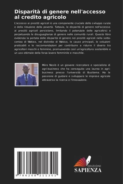 L'accesso ai prestiti agricoli è una componente cruciale dello sviluppo rurale e della riduzione della povertà. Tuttavia, le disparità di genere nell'accesso ai prestiti agricoli persistono, limitando il potenziale delle agricoltrici e perpetuando le disuguaglianze di genere nelle comunità rurali. Questo libro evidenzia la portata delle disparità di genere nei prestiti agricoli nella sotto-contea di Wakiso, nel distretto di Wakiso, le cause principali, le soluzioni praticabili e le raccomandazioni per contribuire a ridurre il divario tra agricoltori maschi e femmine, promuovendo così un'agricoltura sostenibile e un uso ottimale della forza lavoro femminile e maschile.