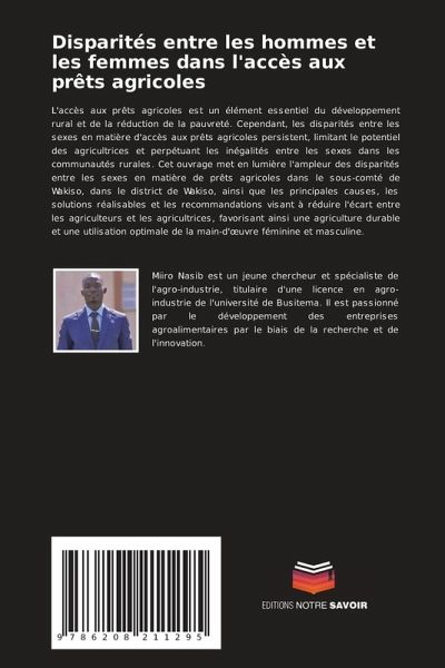 L'accès aux prêts agricoles est un élément essentiel du développement rural et de la réduction de la pauvreté. Cependant, les disparités entre les sexes en matière d'accès aux prêts agricoles persistent, limitant le potentiel des agricultrices et perpétuant les inégalités entre les sexes dans les communautés rurales. Cet ouvrage met en lumière l'ampleur des disparités entre les sexes en matière de prêts agricoles dans le sous-comté de Wakiso, dans le district de Wakiso, ainsi que les principales causes, les solutions réalisables et les recommandations visant à réduire l'écart entre les agriculteurs et les agricultrices, favorisant ainsi une agriculture durable et une utilisation optimale de la main-d'oeuvre féminine et masculine.