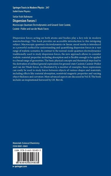 Dispersion forces acting on both atoms and bodies play a key role in modern nanotechnology. This book provides an accessible introduction to this intriguing subject. Macroscopic quantum electrodynamics in linear, causal media is introduced as a powerful method for understanding and quantifying dispersion forces in a vast range of realistic scenarios. In contrast to the normal-mode quantum electrodynamics traditionally used to study dispersion forces, the new approach allows to consider realistic material properties including absorption and is flexible enough to be applied to a broad range of geometries. The basic physical concepts and theoretical steps lead to the derivation of outlined general expressions for ground-state Casimir, Casimir-Polder and van der Waals forces. As illustrated by a number of examples, these expressions can easily be used to study forces between objects of various shapes and materials, including effects like material absorption, nontrivial magnetic properties and varying object thickness and curvature. More advanced aspects are discussed in Vol. II. The book includes an inspirational foreword by I.H. Brevik.