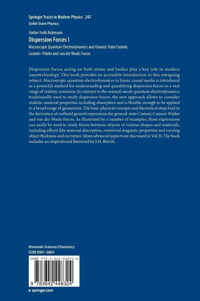 Dispersion forces acting on both atoms and bodies play a key role in modern nanotechnology. As demonstrated in this book, macroscopic quantum electrodynamics provides a powerful method for understanding and quantifying dispersion forces in a vast range of realistic scenarios. The basic physical concepts and theoretical steps allow for the derivation of outlined general expressions for dispersion forces. As illustrated by a number of examples, these expressions can easily be used to study forces between objects of various shapes and materials, including effects like material absorption, nontrivial magnetic properties and dynamical forces asssociated with excited systems.