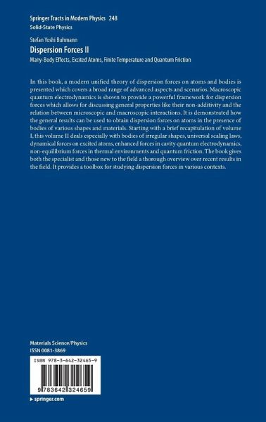 In this book, a modern unified theory of dispersion forces on atoms and bodies is presented which covers a broad range of advanced aspects and scenarios. Macroscopic quantum electrodynamics is shown to provide a powerful framework for dispersion forces which allows for discussing general properties like their non-additivity and the relation between microscopic and macroscopic interactions. It is demonstrated how the general results can be used to obtain dispersion forces on atoms in the presence of bodies of various shapes and materials. Starting with a brief recapitulation of volume I, this volume II deals especially with bodies of irregular shapes, universal scaling laws, dynamical forces on excited atoms, enhanced forces in cavity quantum electrodynamics, non-equilibrium forces in thermal environments and quantum friction. The book gives both the specialist and those new to the field a thorough overview over recent results in the field. It provides a toolbox for studying dispersion forces in various contexts.