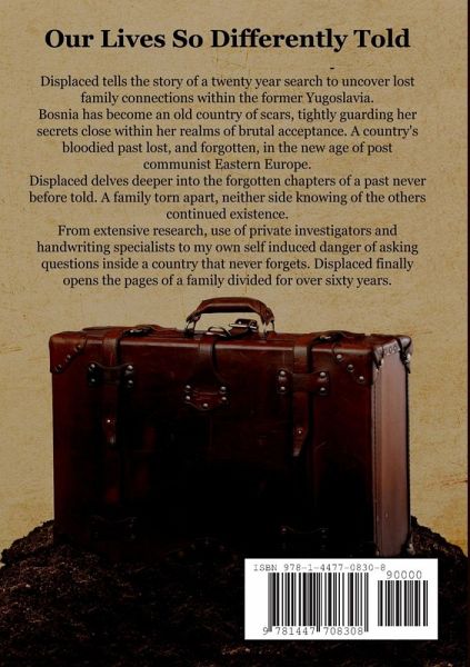 Bosnia is the back drop to this fascinating insight into a twenty year search to uncover the true identity of a man displaced from his country and loved ones. Genealogy today is big business. Websites now offer their services to uncover the truth about our heritage. Lost royal bloodlines can be uncovered at the click of the mouse. Family tragedies of old can be revisited once more, memories cherished at last forever. Imagine however if no records of our existence remained. DISPLACED tells of such a search of no recordable beginning. The story strives to uncover the shrouded blanket, kept in secret for over sixty years, of my own grandfather's life before his appearance in England in 1947. Yugoslavia's bloody and violent times of her past are revisited within my own travels of modern day quest of understanding.