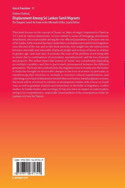 "A significant trait of Dr. Chattoraj's book is that it is balanced in its outlook towards the leadership and the people. ... The narratives are carefully selected from all religious identities to provide a diverse picture of migration. Displacement Among Sri Lankan Tamil Migrants is a series of such narratives, following the waves of time and spaces, disseminating the nostalgia of a shared homeland." (Pragya Sengupta, South Asian Diaspora, January 27, 2023) "This well-written book contributes to the field of development and migration studies ... . This book enthrals ... all those who are interested in knowing more about the conditions of the victims of the Sri Lankan civil war ... . this study will remain relevant for a long time to come as the concept of 'home' will continue to relate to their future development and should be understood and recognized by all who engage with them." (Tridib Chakraborti, Journal of Refugee Studies, September 27, 2022)