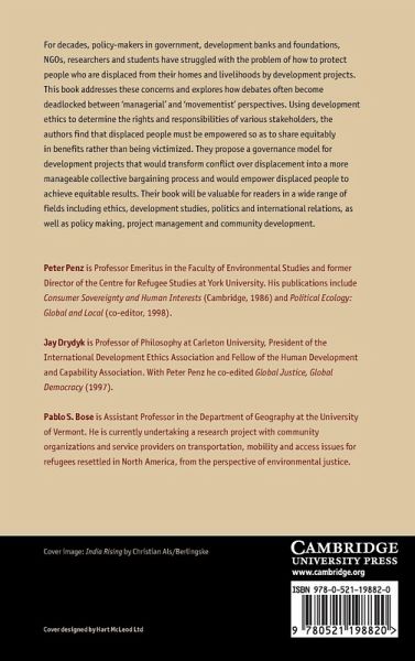 For decades, policy-makers in government, development banks and foundations, NGOs, researchers and students have struggled with the problem of how to protect people who are displaced from their homes and livelihoods by development projects. This book addresses these concerns and explores how debates often become deadlocked between 'managerial' and 'movementist' perspectives. Using development ethics to determine the rights and responsibilities of various stakeholders, the authors find that displaced people must be empowered so as to share equitably in benefits rather than being victimized. They propose a governance model for development projects that would transform conflict over displacement into a more manageable collective bargaining process and would empower displaced people to achieve equitable results. Their book will be valuable for readers in a wide range of fields including ethics, development studies, politics and international relations as well as policy making, project management and community development.