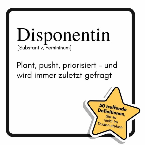 Wer plant, schiebt, rettet und jongliert - und wird trotzdem immer erst gefragt, wenn das Chaos schon tobt? "Disponentin: Plant, pusht, priorisiert - und wird immer zuletzt gefragt" bringt den Alltag der Disponentin auf den Punkt: 50 humorvolle Definitionen, die zeigen, wie viel Organisationstalent, Nervenstärke und Improvisationskunst in diesem Job stecken - illustriert mit treffsicheren Bildern, die jede Situation auf den Punkt bringen.Für wen dieses Buch optimal geeignet ist:- Für Disponentinnen und Disponenten mit Sinn für Selbstironie- Für alle, die Logistik und Transport aus einer neuen Perspektive erleben wollen- Für Kolleginnen, Freunde und Familien, die endlich verstehen wollen, was Dispo wirklich bedeutetEin witziger Blick hinter die Kulissen der Disposition, der zeigt, warum ohne Disponentinnen nichts läuft - und trotzdem immer alles auf sie zurückfällt.Was beim Kauf dieses Buches erwartet werden kann:- 50 pointierte Definitionen aus dem Dispo-Alltag- Passende Illustrationen zu jedem Begriff- Ein Geschenk für alle, die Logistik lieben oder ertragen müssen- Ein Muss für jede Dispo-Kaffeeküche