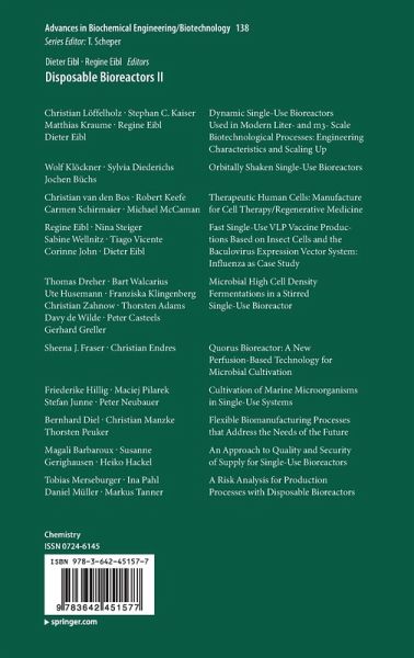 Dynamic Single-Use Bioreactors Used in Modern Liter- and m3- Scale Biotechnological Processes: Engineering Characteristics and Scaling Up, by Christian Löffelholz, Stephan C. Kaiser, Matthias Kraume, Regine Eibl , Dieter Eibl. Orbitally Shaken Single-Use Bioreactors, by Wolf Klöckner, Sylvia Diederichs, Jochen Büchs.
