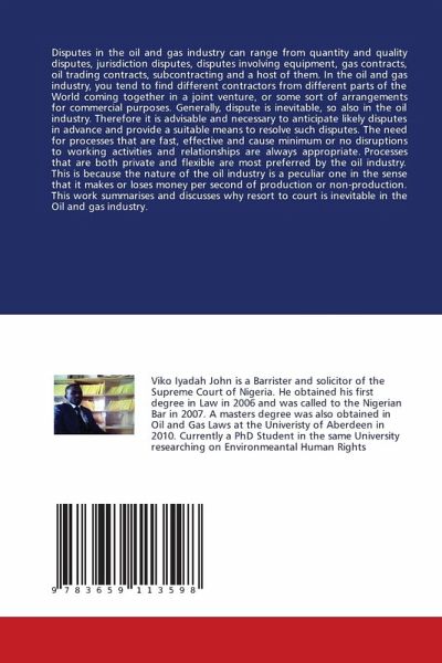 Disputes in the oil and gas industry can range from quantity and quality disputes, jurisdiction disputes, disputes involving equipment, gas contracts, oil trading contracts, subcontracting and a host of them. In the oil and gas industry, you tend to find different contractors from different parts of the World coming together in a joint venture, or some sort of arrangements for commercial purposes. Generally, dispute is inevitable, so also in the oil industry. Therefore it is advisable and necessary to anticipate likely disputes in advance and provide a suitable means to resolve such disputes. The need for processes that are fast, effective and cause minimum or no disruptions to working activities and relationships are always appropriate. Processes that are both private and flexible are most preferred by the oil industry. This is because the nature of the oil industry is a peculiar one in the sense that it makes or loses money per second of production or non-production. This work summarises and discusses why resort to court is inevitable in the Oil and gas industry.