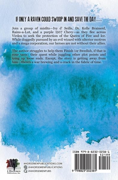 If only a raven could swoop in and save the day... Join a group of misfits-Ivy d' Seille, Dr. Kelle Brainerd, Rains-a-Lot, and a purple 1957 Chevy-as they flee across Virdea to seek the protection of the Queen of Fire and Ice. While doggedly pursued by an evil wizard with ulterior motives and a mega corporation, our heroes are not without their allies. The author struggles to help them Finish (or Swedish, if that is your taste) their quest while juggling other plot points and tying up loose ends. Except, the story is getting away from him-there's a war brewing and a crack in the fabric of time.
