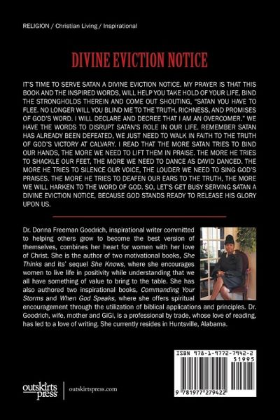 Are you ready to Disrupt Hell? Are you ready to Interrupt the Interrupter? If so, it's time to serve Satan a Divine Eviction Notice.: This book is: "A must-read for anyone serious about strengthening their faith!" "Inspiring and powerful-this book will change how you face life's battles." "An essential guide for those seeking resilience through Christ." My prayer is that this book and the inspired words, will help anyone struggling, to take hold of their life, bind the strongholds therein and come out shouting, "Satan you have to flee. No longer will you blind me to the truth, richness, and promises of God's word. I will declare and decree that I am an overcomer." It is important for us to realize we have the words to disrupt Satan's role in our life. Remember Satan has already been defeated, we just need to walk in faith to the truth of God's victory at calvary. I read that the more Satan tries to bind our hands, the more we need to lift them in praise. the more he tries to shackle our feet, the more we need to dance as David danced. The more he tries to silence our voice, the louder we need to sing God's praises. The more he tries to deafen our ears to the truth, the more we will harken to the word of God. So, let's get busy serving Satan a divine eviction notice, because God stands ready to release His glory upon us.