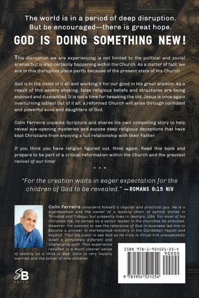 The world is in a period of deep disruption. But be encouraged-there is great hope. God is doing something new! This disruption we are experiencing is not limited to the political and social arenas but is also certainly happening within the Church. As a matter of fact, we are in this disruptive place partly because of the present state of His Church. God is in the midst of it all and working it for our good in His great wisdom. As a result of this severe shaking, false religious beliefs and structures are being exposed and dismantled. It is not a time for tweaking the old. Jesus is once again overturning tables! Out of it all, a reformed Church will arise through confident and powerful sons and daughters of God. Colin Ferreira unpacks Scripture and shares his own compelling story to help reveal eye-opening mysteries and expose deep religious deceptions that have kept Christians from enjoying a full relationship with their Father. If you think you have religion figured out, think again. Read this book and prepare to be part of a critical reformation within the Church and the greatest revival of our time!