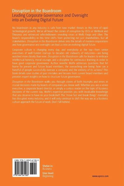 Corporate culture is changing every day, and everybody at the top-from senior executives of well-funded startups to decades old stalwarts of industries-are being watched more closely than ever Disruption in the Boardroom calls for leaders to embrace intellectual honesty, moral courage, and a discipline for continuous learning in order to have good corporate governance. Author Jennifer Wolfe addresses questions that hit home for present and future board members,the overarching one being: how can a handful of people successfully oversee a company and the entirety of its actions? This book details case studies of past mistakes and lessons from current board members and provides expert insights on how to structure future governance.