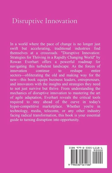 In a world where the pace of change is no longer just swift but accelerating, traditional industries find themselves at a crossroads. "Disruptive Innovation: Strategies for Thriving in a Rapidly Changing World" by Rowan Everhart offers a powerful roadmap for navigating this turbulent landscape. As the forces of innovation continue to reshape entire sectors-obliterating the old and making way for the new-this book equips business leaders, entrepreneurs, and innovators with the insights and strategies they need to not just survive but thrive. From understanding the mechanics of disruptive innovation to mastering the art of agile adaptation, Everhart reveals the critical tools required to stay ahead of the curve in today's hyper-competitive marketplace. Whether you're in technology, media, telecoms, or any other industry facing radical transformation, this book is your essential guide to turning disruption into opportunity.