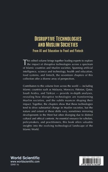 This edited volume brings together leading experts to explore the impact of disruptive technologies across a spectrum of Islamic countries and Muslim societies. Containing seventeen chapters covering artificial intelligence, science and technology, health and education, food systems, and fintech, the collection offers a diverse array of perspectives. Contributors to this volume from across the world - including Islamic countries such as Malaysia, Morocco, Pakistan, Qatar, Saudi Arabia and Türkiye - provide in-depth analyses, revealing how disruptive technologies are reshaping these societies with subtle cultural and ethical nuances. Together, the chapters show how disruptive technologies have induced significant changes in Muslim societies and Islamic countries, generally paralleling those in the West, though with differences due to cultural and ethical issues. An essential resource for scholars, policymakers, and practitioners, this book offers valuable insights into the evolving technological landscape of the Islamic World.