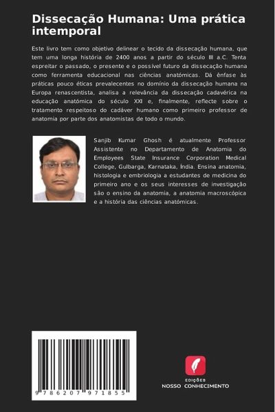 Este livro tem como objetivo delinear o tecido da dissecação humana, que tem uma longa história de 2400 anos a partir do século III a.C. Tenta espreitar o passado, o presente e o possível futuro da dissecação humana como ferramenta educacional nas ciências anatómicas. Dá ênfase às práticas pouco éticas prevalecentes no domínio da dissecação humana na Europa renascentista, analisa a relevância da dissecação cadavérica na educação anatómica do século XXI e, finalmente, reflecte sobre o tratamento respeitoso do cadáver humano como primeiro professor de anatomia por parte dos anatomistas de todo o mundo.