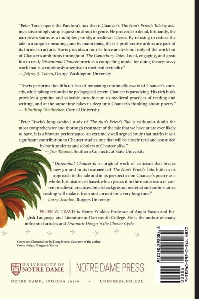 Chaucer's The Nun's Priest's Tale is one of the most popular of The Canterbury Tales. It is only 646 lines long, yet it contains elements of a beast fable, an exemplum, a satire, and other genres. There have been countless attempts to articulate the "real" meaning of the tale, but it has confounded the critics. Peter Travis contends that part of the fun and part of the frustration of trying to interpret the tale has to do with Chaucer's use of the tale to demonstrate the resistance of all literature to traditional critical practices. But the world of The Nun's Priest's Tale is so creative and so quintessentially Chaucerian that critics persist in writing about it. No one has followed the critical fortunes of Chauntecleer and his companions more closely over time than Peter Travis. One of the most important contributions of this book is his assessment of the tale's reception. Travis also provides an admirable discussion of genre: his analysis of parody and Menippean satire clarify how to approach works such as this tale that take pleasure in resisting traditional generic classifications. Travis also demonstrates that the tale deliberately invoked its readers' memories of specific grammar school literary assignments, and the tale thus becomes a miniaturized synopticon of western learning. Building on these analyses and insights, Travis's final argument is that The Nun's Priest's Tale is Chaucer's premier work of self-parody, an ironic apologia pro sua arte. The most profound matters foregrounded in the tale are not advertisements of the poet's achievements. Rather, they are poetic problems that Chaucer wrestled with from the beginning of his career and, at the end of that career, wanted to address in a concentrated, experimental, and parapoetic way. "Peter Travis opens the Pandora's box that is Chaucer's The Nun's Priest's Tale by asking a disarmingly simple question about its genre. He proceeds to detail, brilliantly, the narrative's status as a multiplex parody, a medieval Ulysses. By refusing to reduce the tale to a singular meaning, and by maintaining that its proliferative ardors are part of its formal structure, Travis provides a tour de force analysis not only of the work but of Chaucer's ambitions throughout The Canterbury Tales. Lucid, engaging, and great fun to read, Disseminal Chaucer provides a compelling model for doing theory-savvy work that is scrupulously attentive to medieval textuality." --Jeffrey J. Cohen, George Washington University "Travis performs the difficult feat of remaining continually aware of Chaucer's comedy, while taking seriously the pedagogical system Chaucer is parodying. His rich book provides a genuine and valuable introduction to medieval practices of reading and writing, and at the same time takes us deep into Chaucer's thinking about poetry." --Winthrop Wetherbee, Cornell University "Peter Travis's long-awaited study of The Nun's Priest's Tale is without a doubt the most comprehensive and thorough treatment of the tale that we have or are ever likely to have. It is a bravura performance, an extremely well argued study that marks it as a significant contribution to Chaucer studies, one that will be closely read and consulted by both students and scholars of Chaucer alike." --Jim Rhodes, Southern Connecticut State University "Disseminal Chaucer is an original work of criticism that breaks new ground in its treatment of The Nun's Priest's Tale, both in its approach to the tale and in its perspective on Chaucer's poetry as a whole. It is historicist based, which places it in the mainstream of current medieval practices, but its background material and authoritative reading will make it fresh and current for a very long time." --Larry Scanlon, Rutgers University
