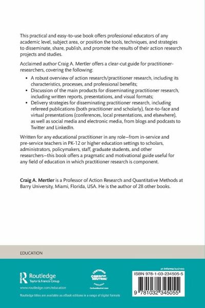 This practical and easy to use book offers professional educators of any level, subject area, and position the tools, techniques, and strategies to disseminate, share, publish, and promote the results of their action research projects. A pragmatic guide useful for any field of education in which practitioner research is component.