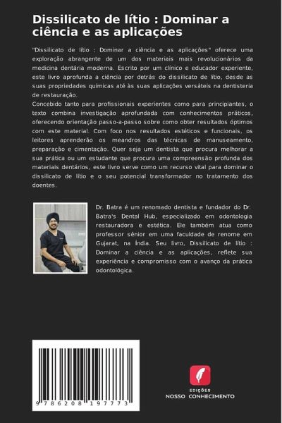 "Dissilicato de lítio : Dominar a ciência e as aplicações" oferece uma exploração abrangente de um dos materiais mais revolucionários da medicina dentária moderna. Escrito por um clínico e educador experiente, este livro aprofunda a ciência por detrás do dissilicato de lítio, desde as suas propriedades químicas até às suas aplicações versáteis na dentisteria de restauração.Concebido tanto para profissionais experientes como para principiantes, o texto combina investigação aprofundada com conhecimentos práticos, oferecendo orientação passo-a-passo sobre como obter resultados óptimos com este material. Com foco nos resultados estéticos e funcionais, os leitores aprenderão os meandros das técnicas de manuseamento, preparação e cimentação. Quer seja um dentista que procura melhorar a sua prática ou um estudante que procura uma compreensão profunda dos materiais dentários, este livro serve como um recurso vital para dominar o dissilicato de lítio e o seu potencial transformador no tratamento dos doentes.