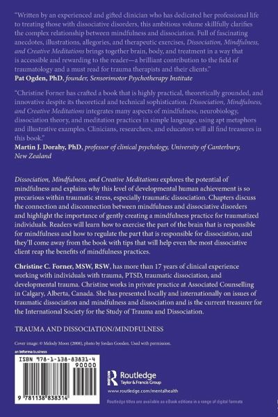 In Dissociation, Mindfulness, and Creative Meditations, clinician Christine Forner offers concrete, easy-to-follow solutions for adapting meditation techniques for healing symptoms of PTSD, complex trauma, and dissociation.