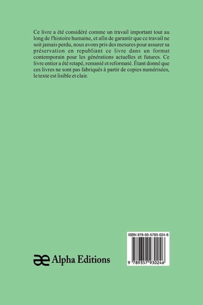 Dissociations, est un livre classique et rare, qui a été considéré comme important tout au long de l'histoire de l'humanité, et pour que cet ouvrage ne soit jamais oublié, chez Alpha Editions, nous avons fait des efforts pour sa préservation en rééditant ce livre dans un format moderne pour les générations présentes et futures. . Tout ce livre a été reformaté, retapé et repensé. Ces livres ne sont pas constitués de copies numérisées de leur uvre originale et leur texte est donc clair et lisible. Ce livre remarquable s'inscrit dans les genres de Language and Literatures, Romance literatures