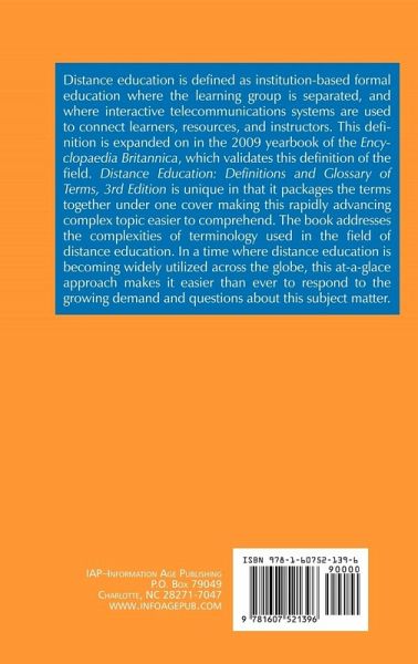 Distance education is defined as institution-based formal education where the learning group is separated, and where interactive telecommunications systems are used to connect learners, resources, and instructors. This definition is expanded on in the 2009 yearbook of the Encyclopaedia Britannica, which validates this definition of the field. Distance Education: Definition and Glossary of Terms, 3rd Edition is unique in that it packages the terms together under one cover making this rapidly advancing complex topic easier to comprehend. The book addresses the complexities of terminology used in the field of distance education. In a time where distance education is becoming widely utilized across the globe, this at-a-glace approach makes it easier than ever to respond to the growing demand and questions about this subject matter.